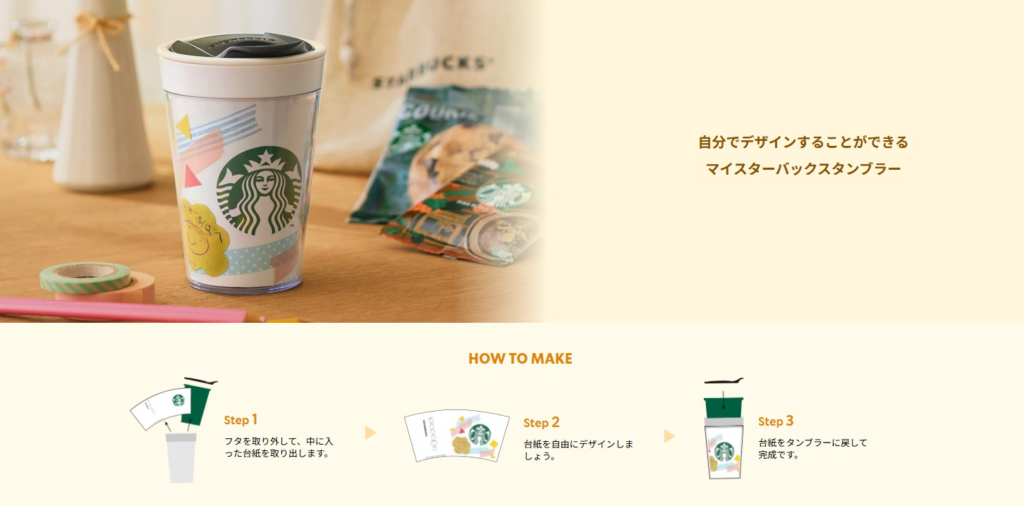 이번에 출시된 「나만의 스타벅스 텀블러(マイスターバックスタンブラー)」는 사실 과거 기간 한정 상품으로도 출시된 적이 있습니다. 이번에는 일상에서 사용하기 더 좋고 잡기 편한 작은 사이즈로 나왔습니다. 새하얀 종이 위에 어르신이나 지인에게 전하고 싶은 따뜻한 메시지를 자유롭게 꾸며 세상에 하나뿐인 텀블러로 만들 수 있습니다. 컵 안에 끼워 넣은 종이는 언제든지 교체할 수 있어, 마음을 담은 메시지를 수시로 바꿔 전달할 수 있습니다.