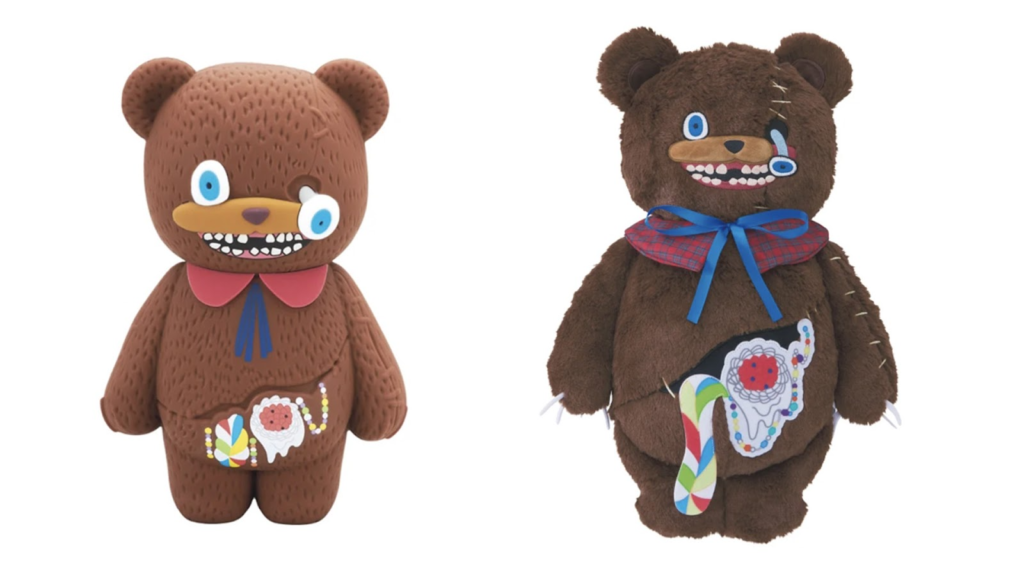 봉제 인형 곰은 보통 귀엽고 사랑스러운 이미지를 주지만, 유니버설 스튜디오 재팬의 「하미쿠마(ハミクマ)」는 공포 게임에서나 볼 법한 소름 끼치는 모습으로 등장합니다. 배가 갈라져서 무언가 튀어나온 듯한 모습(튀어나온 장기들은 사탕, 케이크 등 음식으로 대체되었습니다)에 한쪽 눈알이 튀어나와 있어 매우 흉측한 모습입니다.