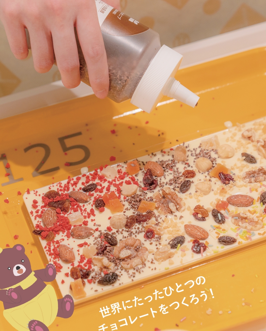 공원 내에는 방문객들이 직접 초콜릿 DIY를 체험해볼 수 있는 워크숍도 특별히 마련되어 있어요(참가비 별도, 1인당 1,700엔). 현장에서 제공하는 재료를 이용해 초콜릿 위에 장식을 얹어, 세상에 단 하나뿐인 나만의 초콜릿을 만들어볼 수 있답니다.