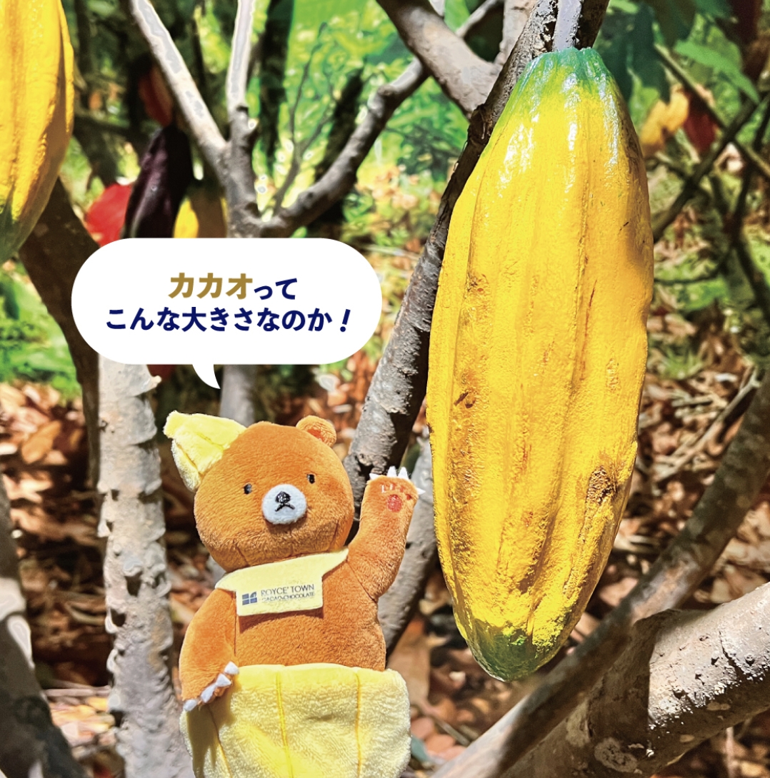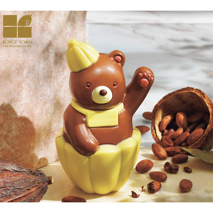 이곳에서만 판매하는 상품이라고 하면, 바로 ROYCE’ CACAO&CHOCOLATE TOWN의 공원 마스코트인 ‘カカオクマ'(임시번역: 카카오곰)의 관련 굿즈를 말하는 거예요. ‘카카오곰’이라는 이름의 이 마스코트는 머리 한쪽에 카카오 열매 껍질을 쓴 갈색 곰인데요, 관련 굿즈는 오직 이곳 공장 직영점에서만 판매하고 있어서 다른 ROYCE’ 매장에서는 구매할 수 없답니다!