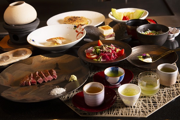 숙박은 역과 직결되어 교통이 편리한 ‘시즈오카 어소시아 호텔’을 선택하세요. 저녁 식사는 호텔 내 ‘철판구이 나고테이’에서 ‘스루가 차연’을 즐기세요. 눈앞에서 셰프가 직접 구워주는 와규 스테이크에 소믈리에가 엄선한 ‘시즈오카차(센차, 호지차 등)’를 곁들입니다. 차의 깔끔한 맛이 와규의 풍부한 마블링과 균형을 이루며, 시즈오카만의 독특한 음식을 맛볼 수 있습니다.